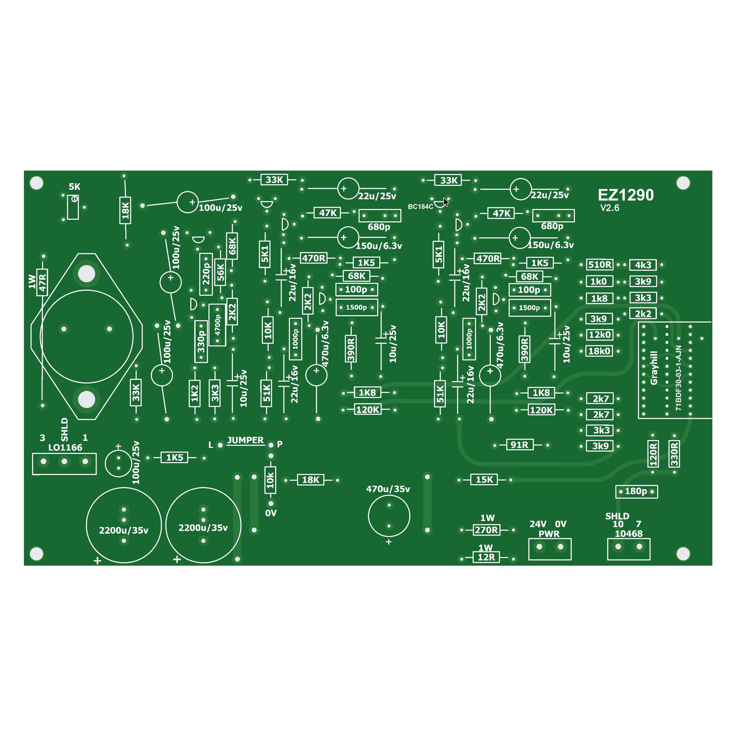 This DIY EZ1290 PCB is the same circuit found in the Neve 1290 preamp which is popular because it serves as the preamp for the famed Neve 1073 module. This build is very well documented and sounds amazing. Please refer to the documentation tab for the BOM and other build docs.